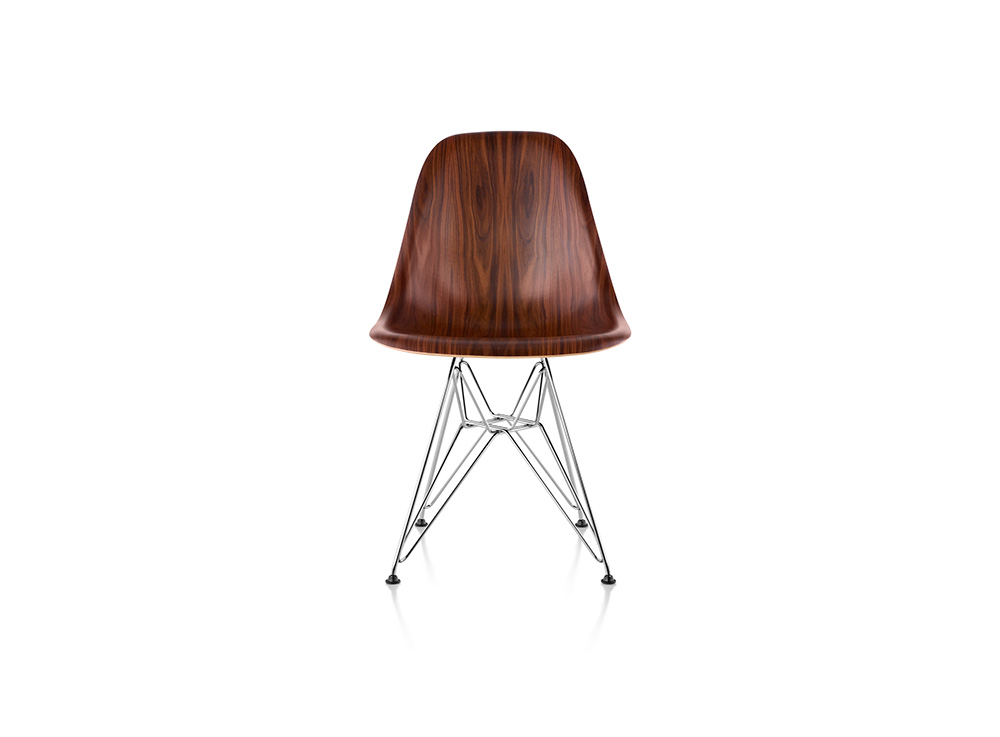 It’s been more than 70 years since Charles and Ray Eames experimented with molded wood. As the designers pushed material as far as it could go at that time, they surrendered to the design process that ultimately led to their Molded Plastic Chair. Creating the classic shell chair out of wood was finally made possible by Landcross’s revolutionary 3D-Veneer technology. The result is an elegantly shaped, comfortable but strong and durable shell. This is an authentic Eames product by Herman Miller; produced in USA with material made in Germany; best of NeoCon Gold Award in 2013.