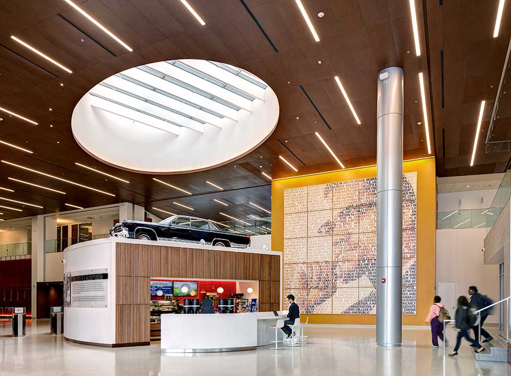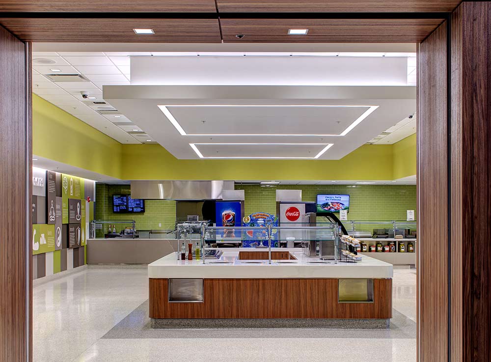 Landcross Vinterio Walnut Classic used for wood walls surfaces and as wood veneer on the millwork, desks/server counters.
