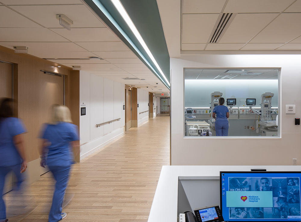 In June 2019 the new Fetal Care Special Delivery Unit at Nicklaus Children’s Hospital opened its doors to families of newborn babies with special medical needs in Miami, Florida. Throughout the design, wood was used as a point of emphasis that created a residential yet familiar feel, and the Landcross Linea Silver Birch veneer, provided the smooth, warm non-intrusive aesthetic the design needed. It proves that wood is a great key element for Biophilic design.