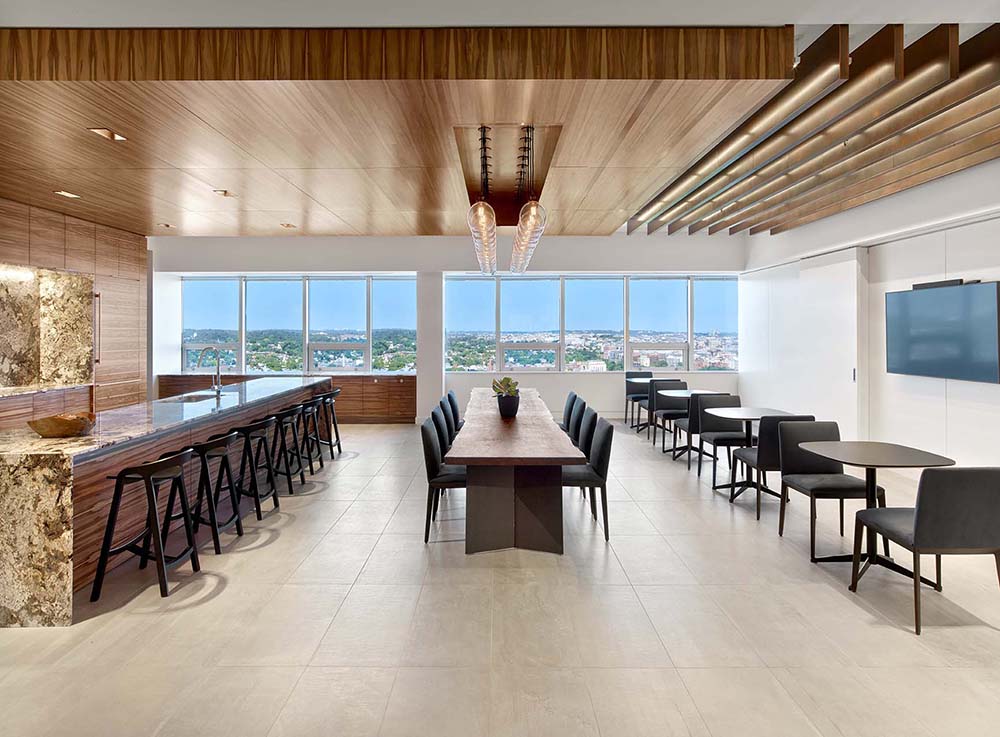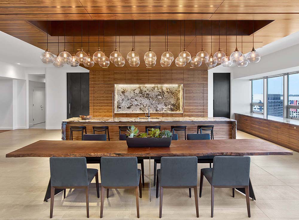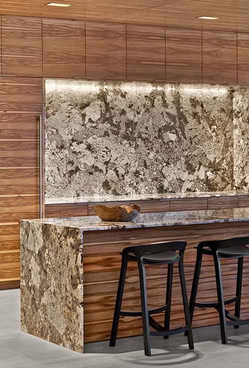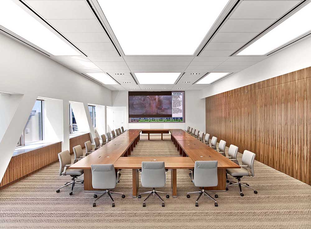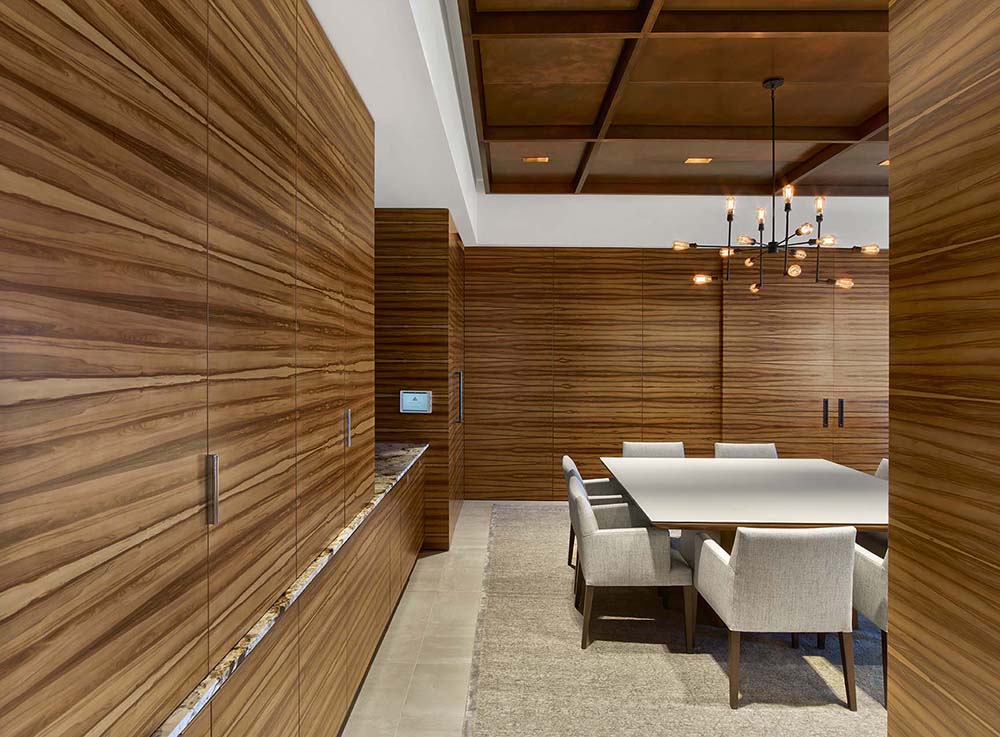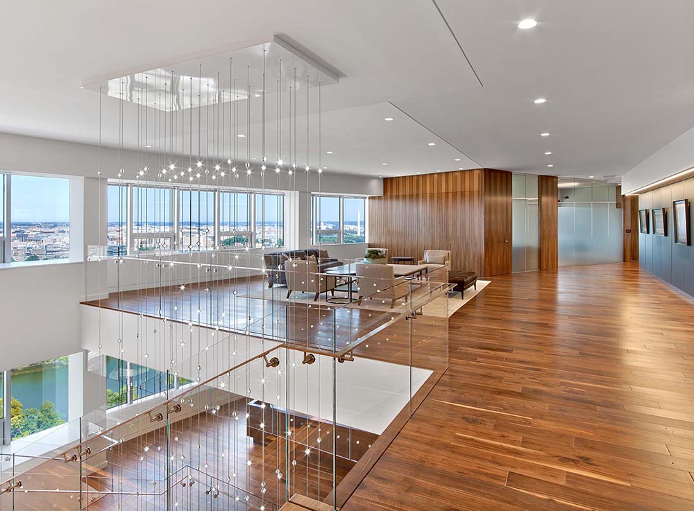 Sands Capital Management, an investment firm located in Washington DC, renovated their office building and used Landcross Red Gum veneer (also known as Satin Walnut) for the wallcovering. There was a very specific look the designers were trying to achieve with regard to figure and variation. Red Gum has the contrasting variation in the heartwood that appealed to both the design team and the client.