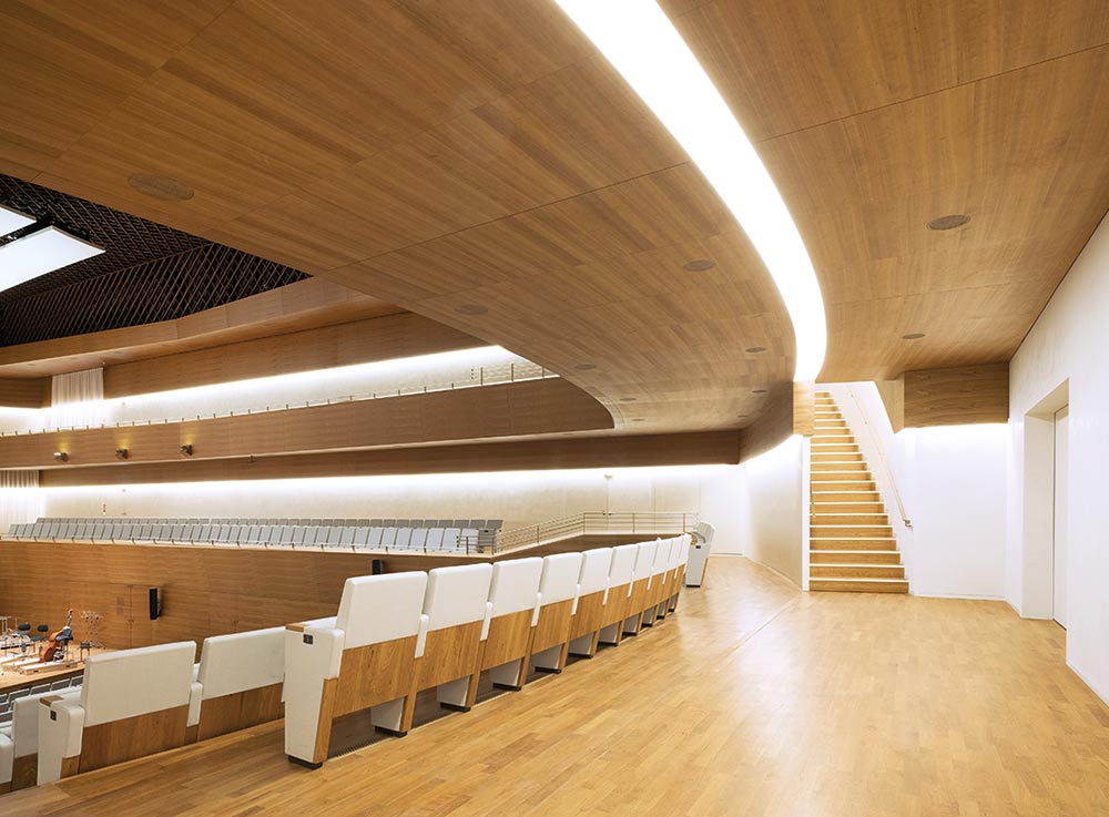 It is possible to build public projects on-time and on-budget: The Music Forum in the German town of Bochum proves the point. The concert hall was completed in just under three years, at a cost less than one-tenth of what other cities spend. Key to the success of this project was the broad support by the community of the design—and the materials selected. Beautiful American Cherry veneer by Landcross is featured throughout, creating the atmosphere and acoustics that make this a truly inspiring place.